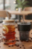 Double-wall stainless steel • ergonomic handle • straw & secure lid• Amber Glass Tumbler with Leather Sleeve
